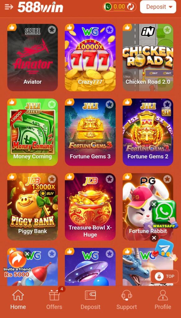 The main appeal of the 588win Game is its easy layout, quick login, and support for Pakistani payment methods like EasyPaisa and JazzCash. Even beginners can open the app and understand what to do without confusion.