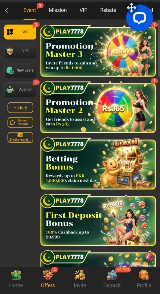 Play7778 Game is becoming popular among Pakistani users who want a simple and mobile-friendly way to enjoy online casino-style games. Many players look for apps that work smoothly on low to mid-range phones, and this is where play7778 stands out. It runs fine on average internet speeds and doesn’t feel too heavy.